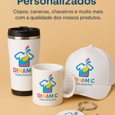 Na Dinamic Sublimações, criamos brindes personalizados com qualidade e cores vibrantes para valorizar sua marca.