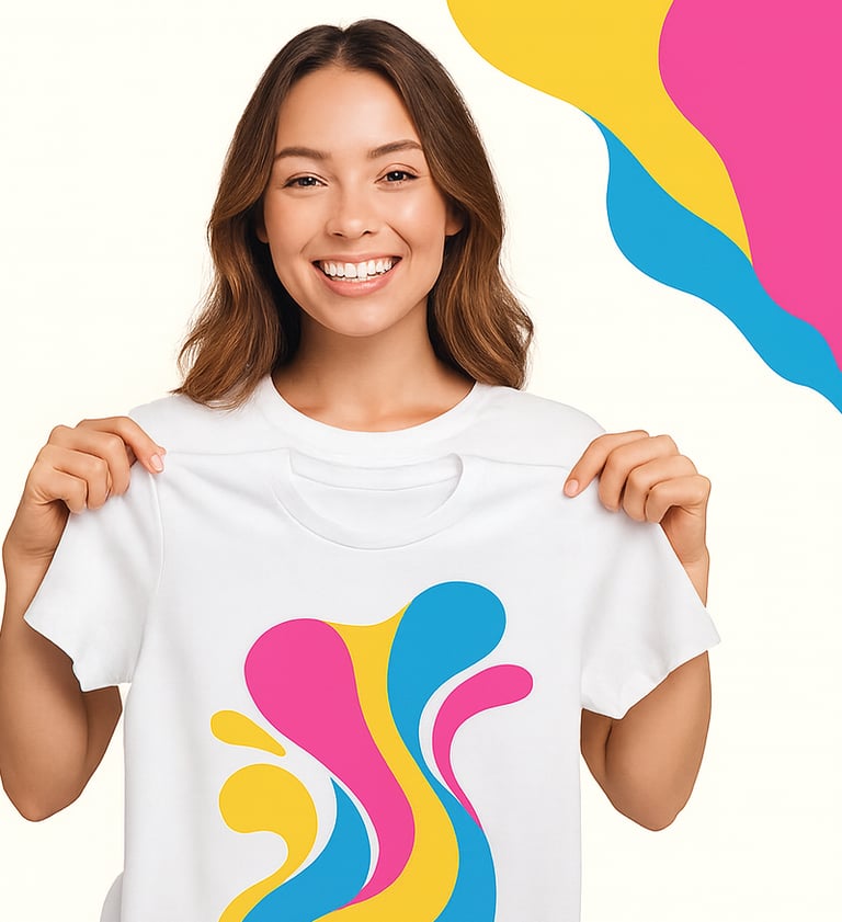 A técnica DTF (Direct to Film) permite imprimir qualquer arte com fidelidade de cor e excelente durabilidade. Diferente da sublimação comum, o DTF estampa em tecidos claros e escuros, incluindo algodão.